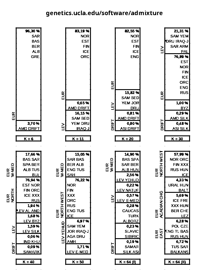 Cluster 4 [LEV] ~ 21,31% (Samaritan 0.987851, Yemenite_Jew 0.758152, Druze 0.753707, Iraqi_Jew 0.712152, Sardinian 0.687419, Armenian 0.681763, Palestinian 0.646454)