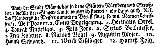 - Ludwig Tieck bezieht sich auf Wagenseils Darstellung der Meistersinger in dem von ihm 1803 herausgegebenen Band "Minnelieder aus dem Schwäbischen Zeitalter".