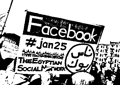 Abb. "A man during the 2011 Egyptian protests [Arab Spring] carrying a card saying 'Facebook, #jan25, The Egyptian Social Network'", 1. Feb. 2011, El-Tahrir Square, محطة السادات، Qasr El Nil, Cairo Governorate 11512, Ägypten, Bild von Essam Sharraf unter Creative-Commons-Lizenz CC BY-SA 3.0 (modifiziert).