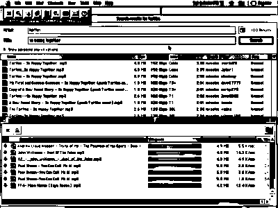 Abb. "Napster client running on an original iBook", 11. März 2001, von Njahnke unter Creative-Commons-Lizenz CC BY-SA 4.0, "Napster war eine Musiktauschbörse, die von Shawn Fanning, John Fanning und Sean Parker gegründet wurde und 1999 online ging. [...] Revolutionär war dabei sein Peer-to-Peer-Ansatz (P2P). Die Napster-Software durchsuchte den Rechner, auf dem sie installiert war, nach MP3-Dateien und meldete die Ergebnisse an einen zentralen Server im Internet, wo auch die Angebote und Suchanfragen der anderen Teilnehmer eingingen. Der Server meldete als Ergebnis auf eine Anfrage die IP-Adressen der Computer zurück, die die gesuchte Musikdatei anboten. Die beiden Clients konnten sich daraufhin direkt miteinander verbinden (Peer-to-Peer) und das Musikstück kopieren [...]. Als verhängnisvoll erwies sich für Napster das Server-Client-System, das auf zentrale Rechner zur Weitervermittlung der Suchanfragen angewiesen war. Dadurch konnten die Rechteverwerter der Musikindustrie sowie die RIAA (Recording Industry Association of America) Napster mit Klagen überziehen und die Stilllegung der Server verlangen" (WP).